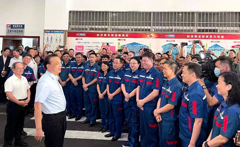 走出五發(fā)車間,李克強(qiáng)與玉柴研發(fā)、技能人才代表熱烈交流。他說,玉柴這70年來,始終聚焦主業(yè),而且始終瞄準(zhǔn)國際先進(jìn)技術(shù)和裝備水平,這走過的路是不平凡的,玉柴現(xiàn)在創(chuàng)造的業(yè)績(jī)也是輝煌的,所有玉柴人都應(yīng)該為此感到自豪??吹接癫襁@樣的發(fā)展態(tài)勢(shì),看到玉柴所創(chuàng)造的產(chǎn)品,深感玉林真是一個(gè)美玉成林的地方,而玉柴就是“玉中之美”,不負(fù)國家,也不負(fù)玉林這個(gè)美譽(yù),“眾人在拾柴,火焰很高”。希望玉柴堅(jiān)定不移走創(chuàng)新驅(qū)動(dòng)高質(zhì)量發(fā)展之路,努力打造世界一流企業(yè)。