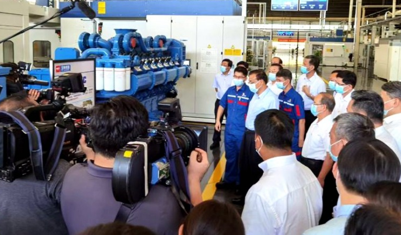 李克強(qiáng)說:“高速船用發(fā)動(dòng)機(jī)最大功率達(dá)到4000馬力,農(nóng)業(yè)機(jī)械用發(fā)動(dòng)機(jī)突破700馬力,這是非常不容易的,由此可以看出整個(gè)企業(yè)的創(chuàng)新發(fā)展活力?!?